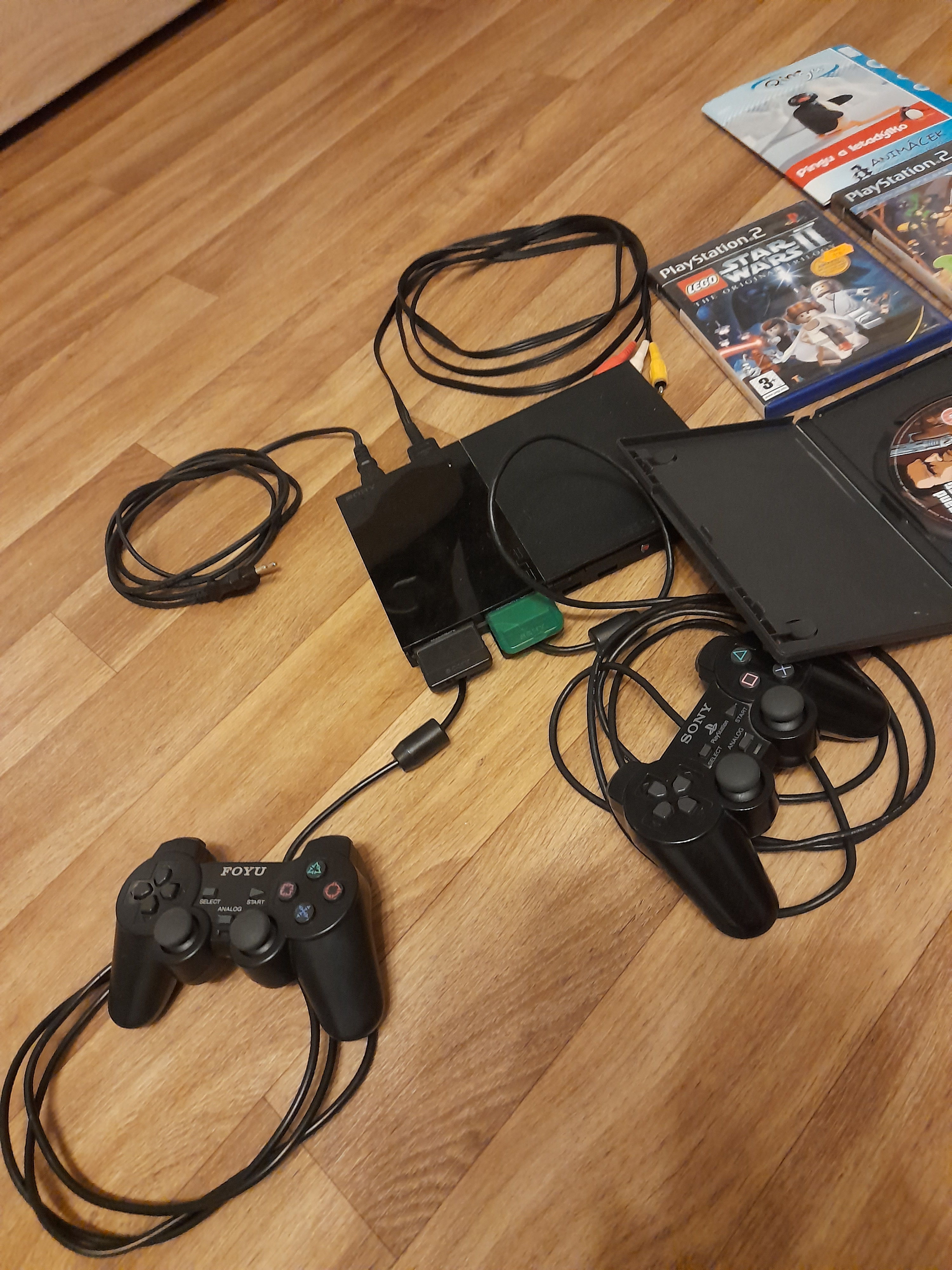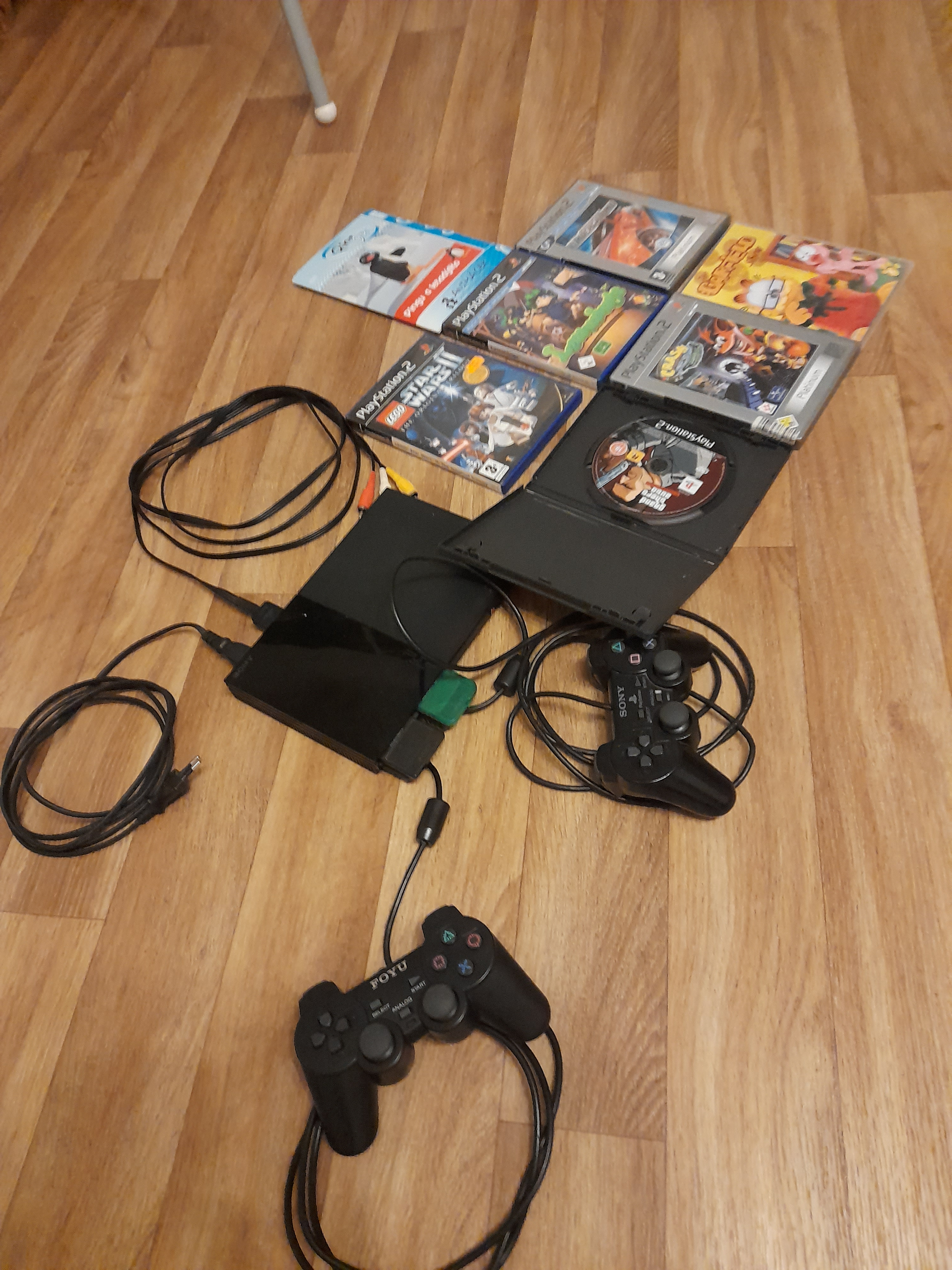 Daruji funkční PS 2 s dvěma ovladači,s kabeláží pro zapojení do TV. Nějaké hry a pohádky k tomu. Hradím i poštovné :)